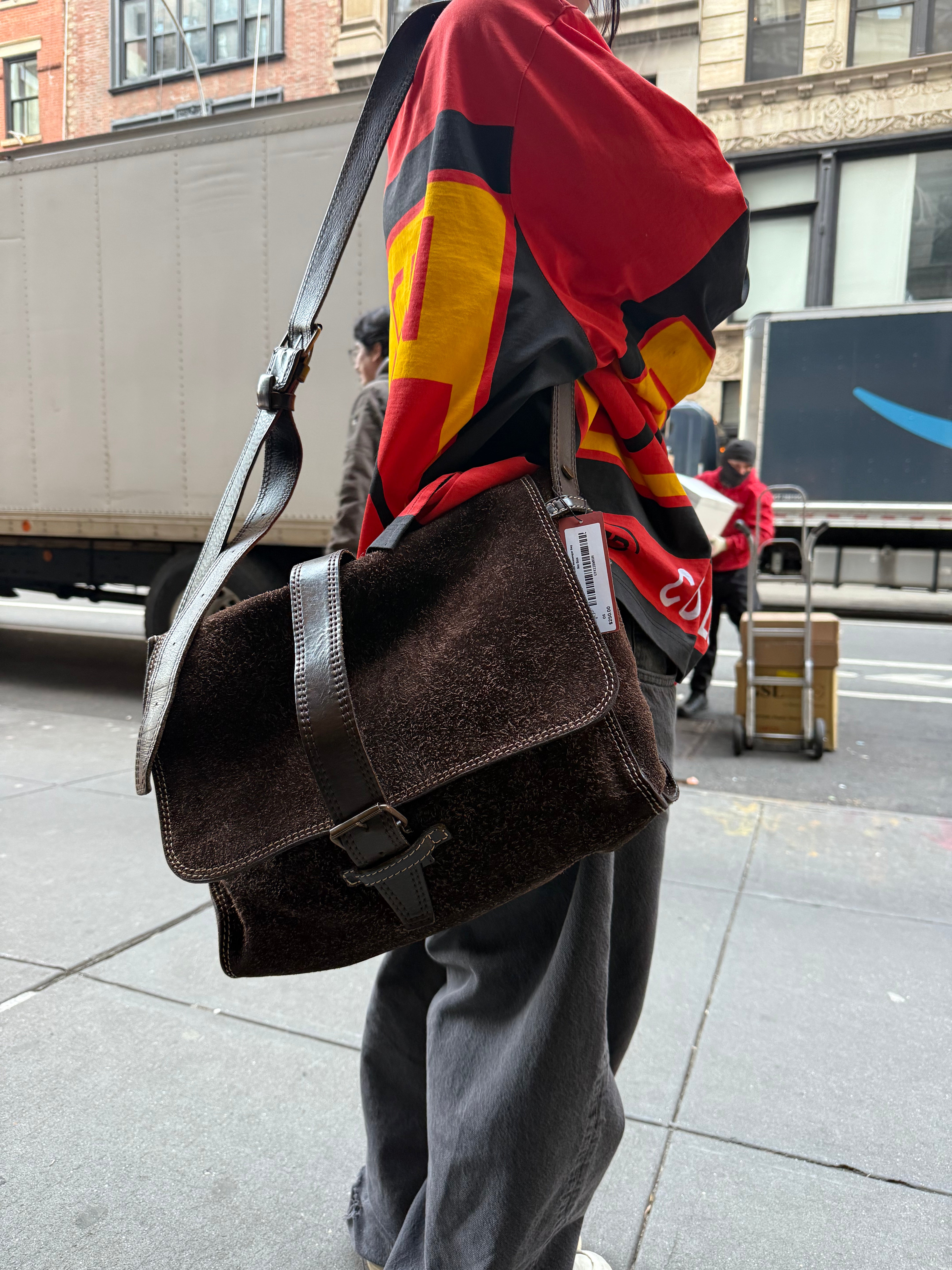 John Varvatos Suede Messenger Bag