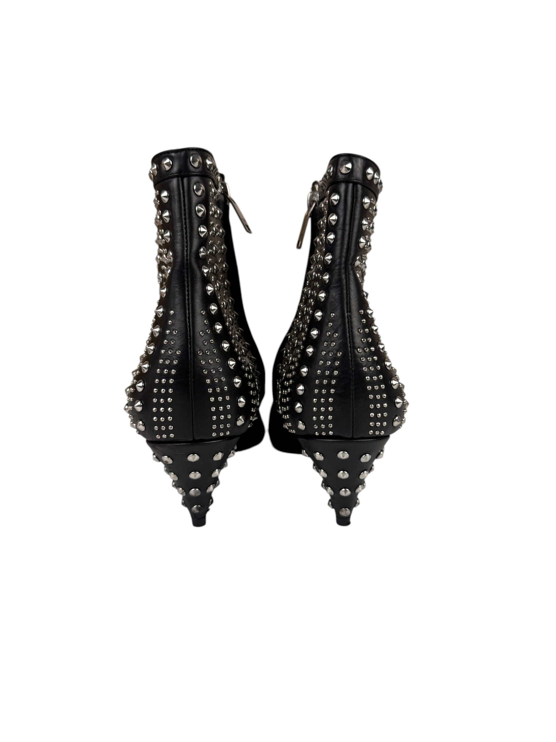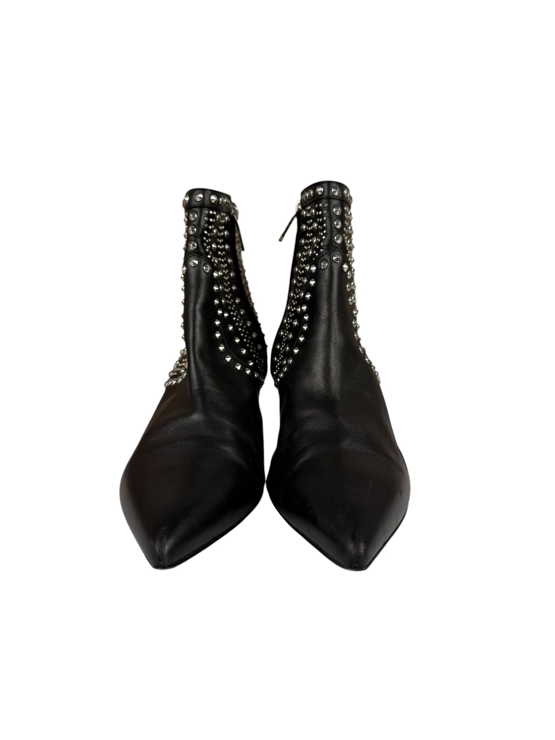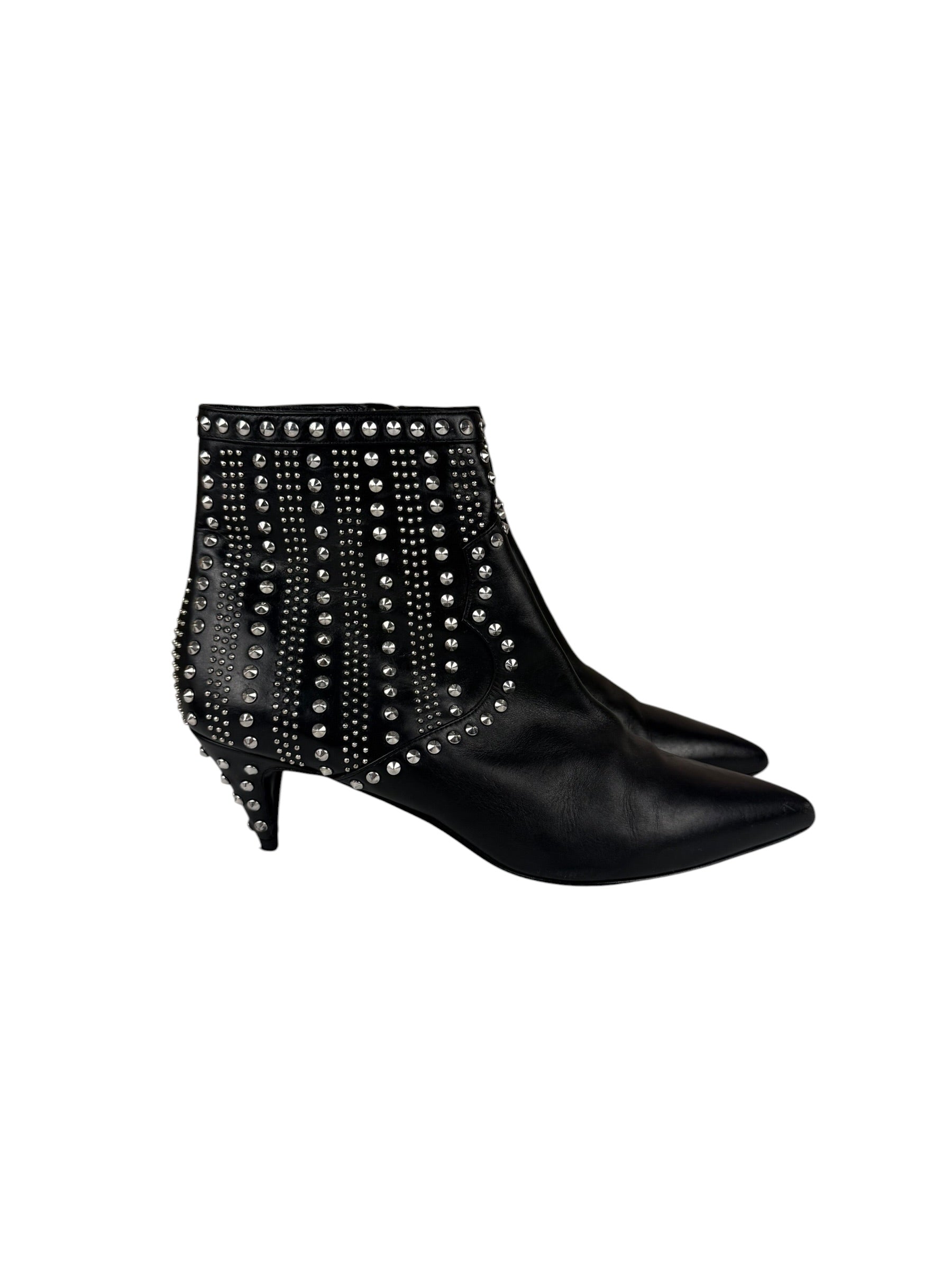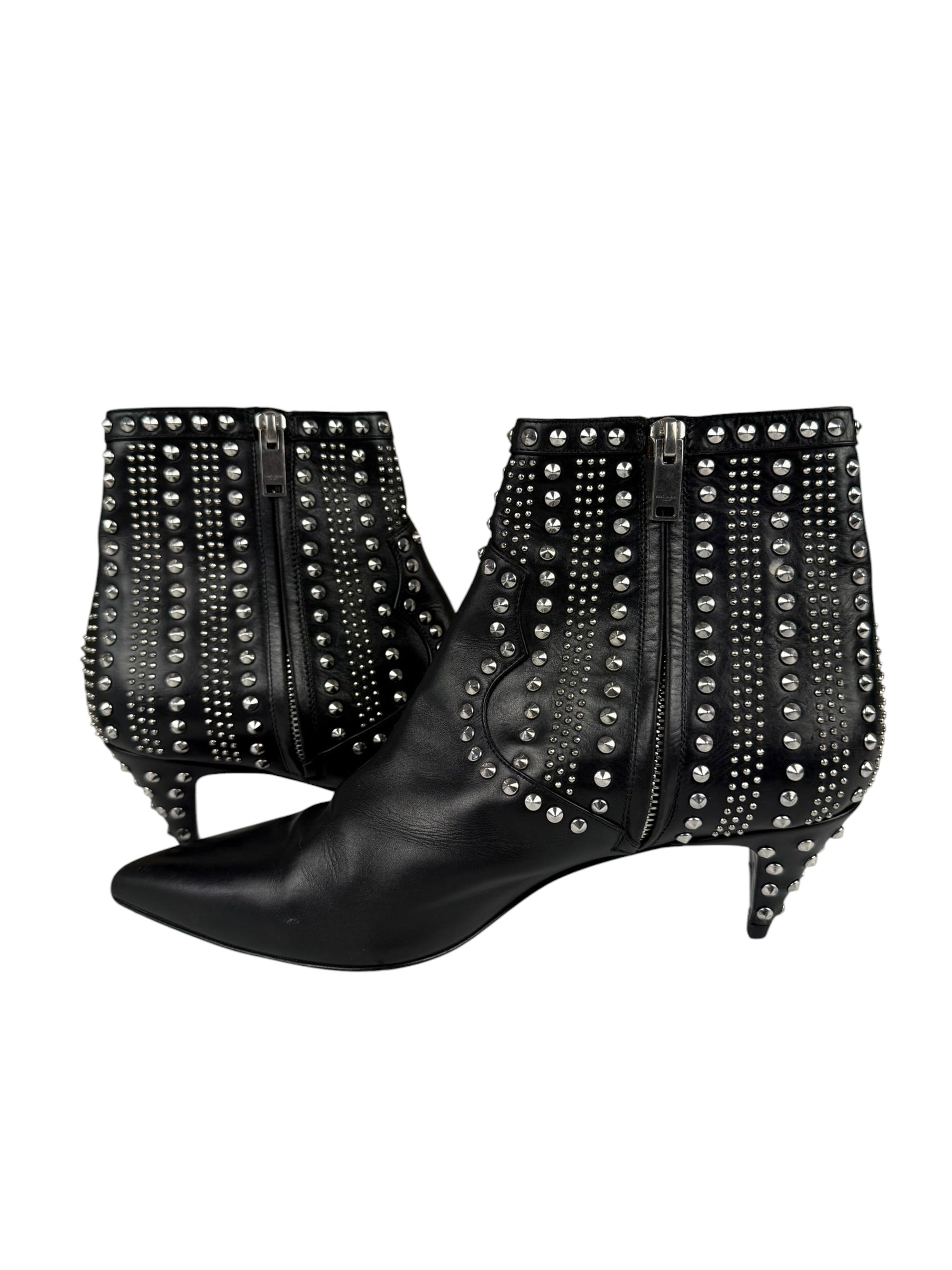 Saint Laurent Black Leather Studded Ankle Boots