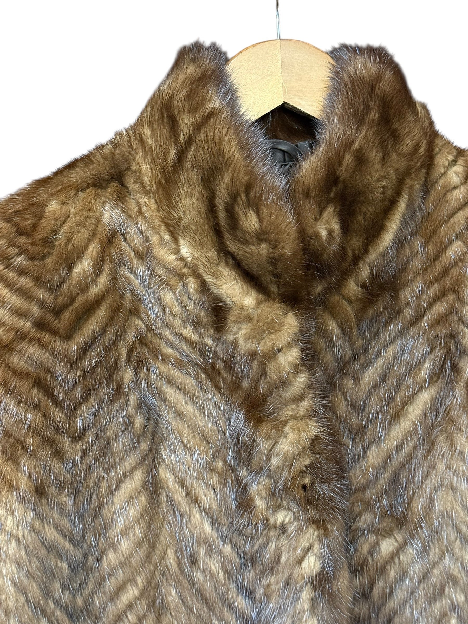 Vintage Dark Brown Chevron Fur Coat