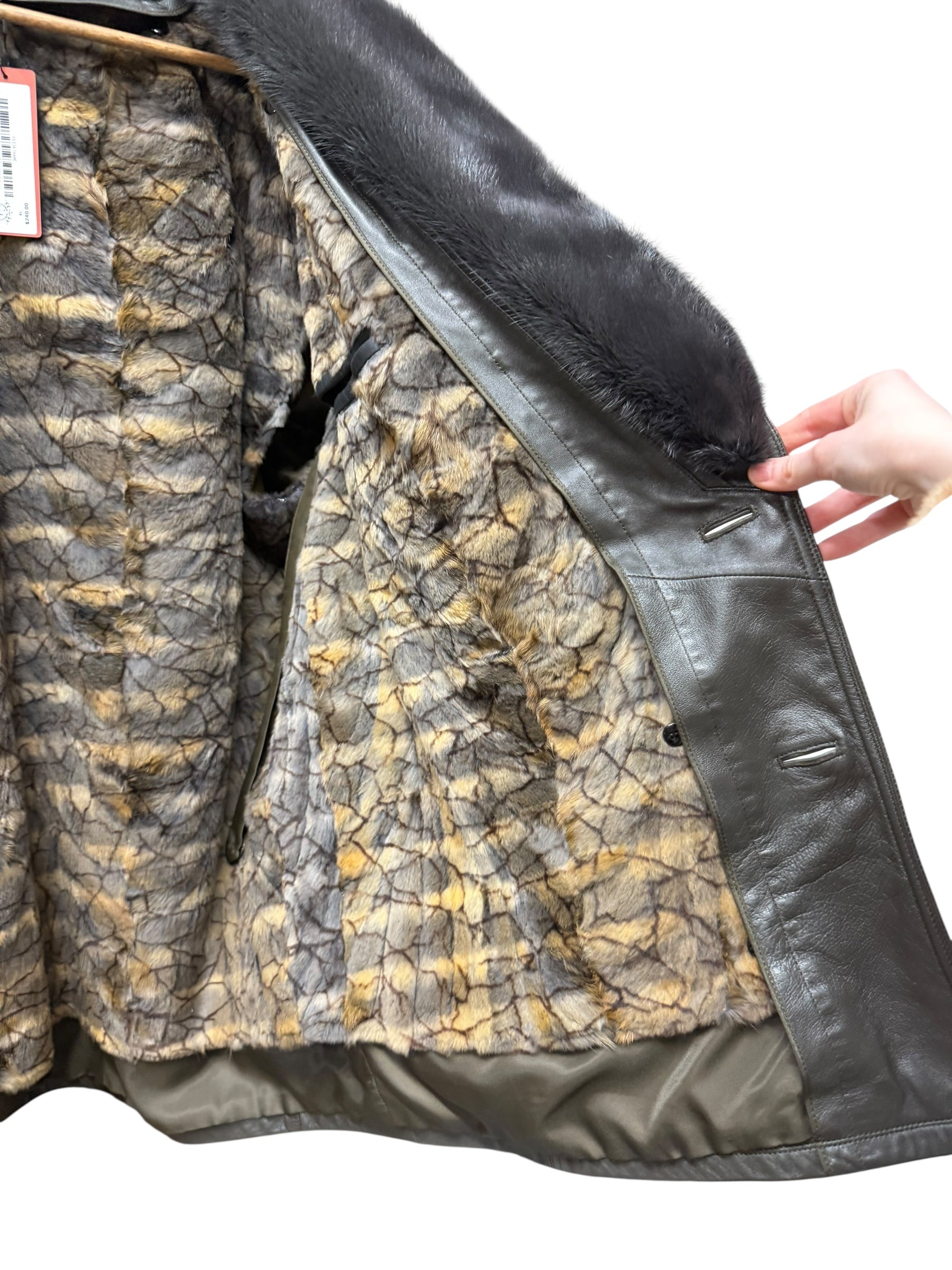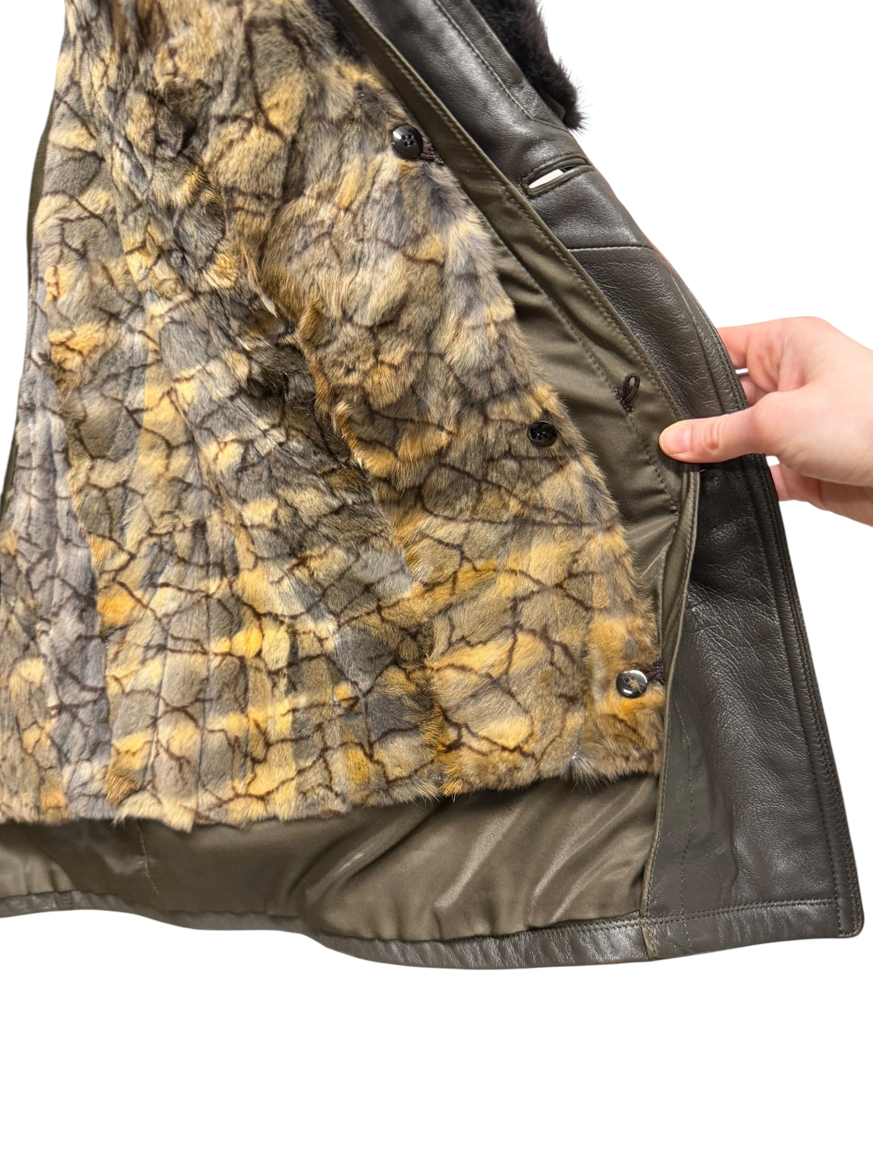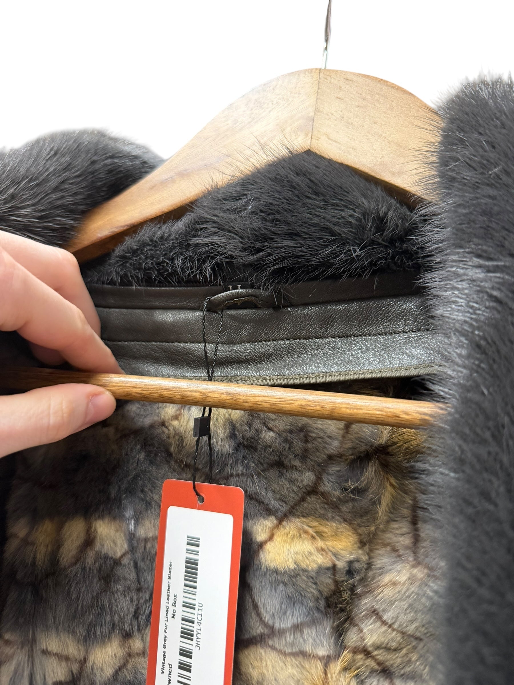 Vintage Grey Fur Lined Leather Blazer Coat