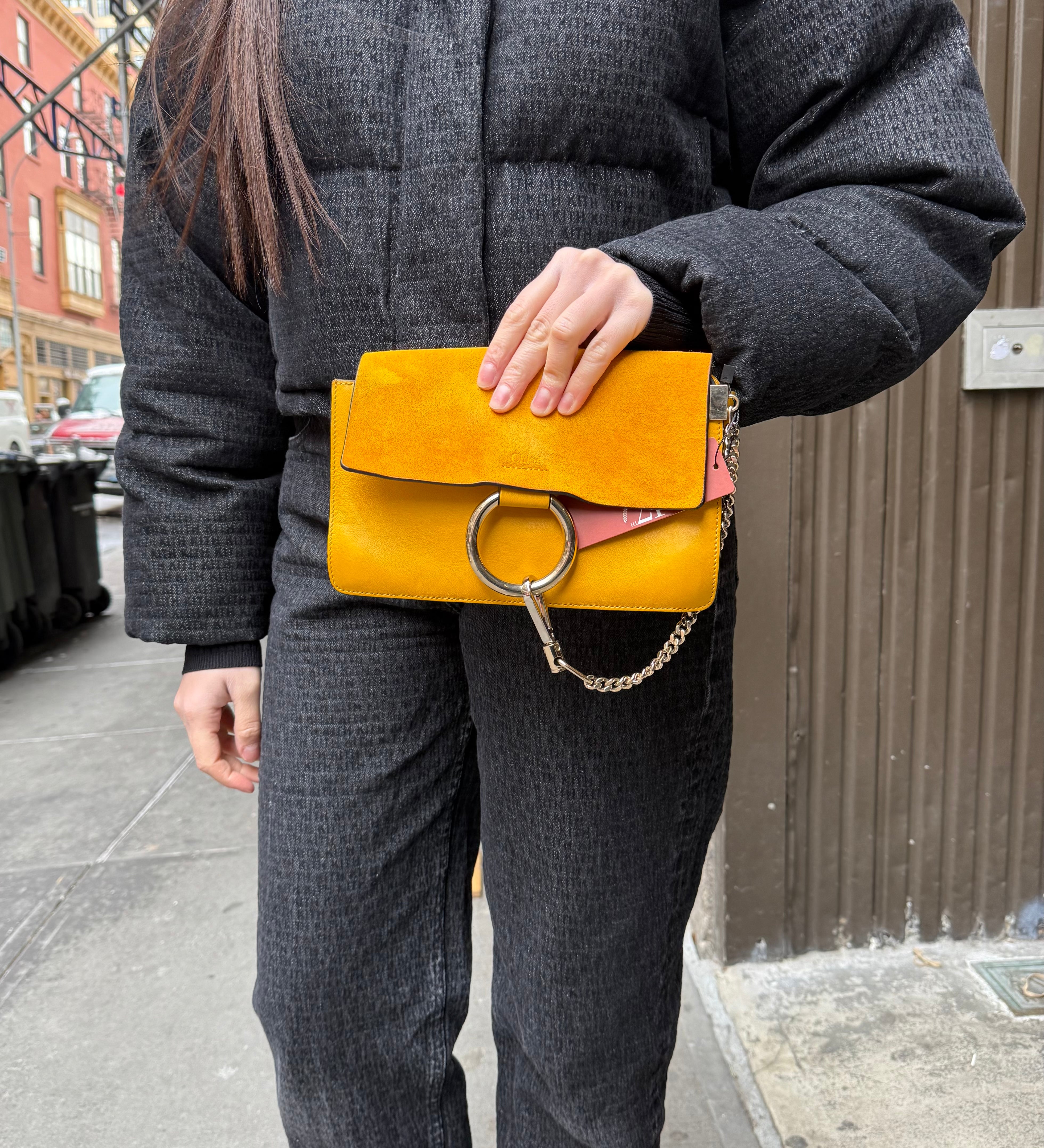 Chloé Suede/Calfskin Yellow Faye Shoulder Bag