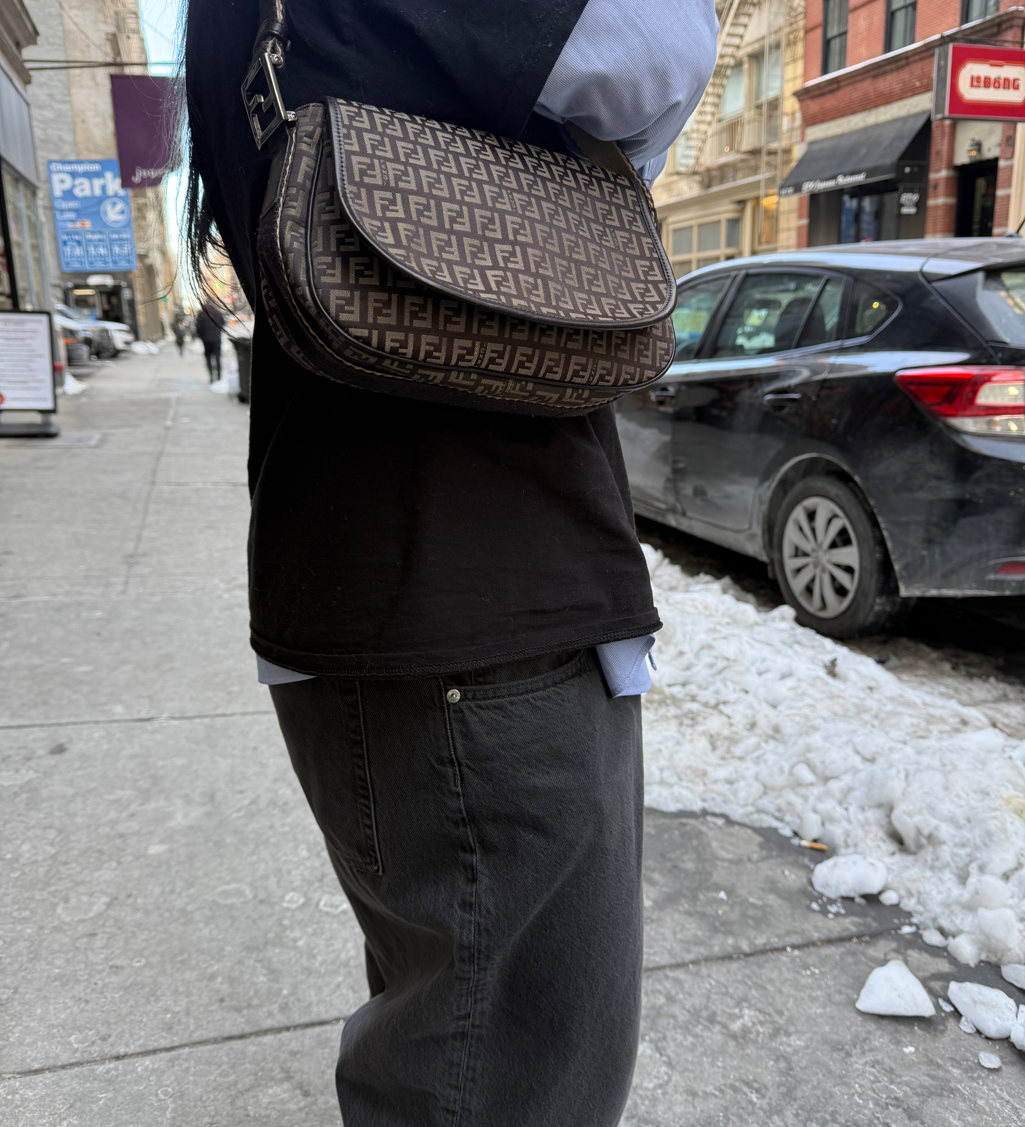 Fendi FF Vintage Brown Flap Crossbody Bag