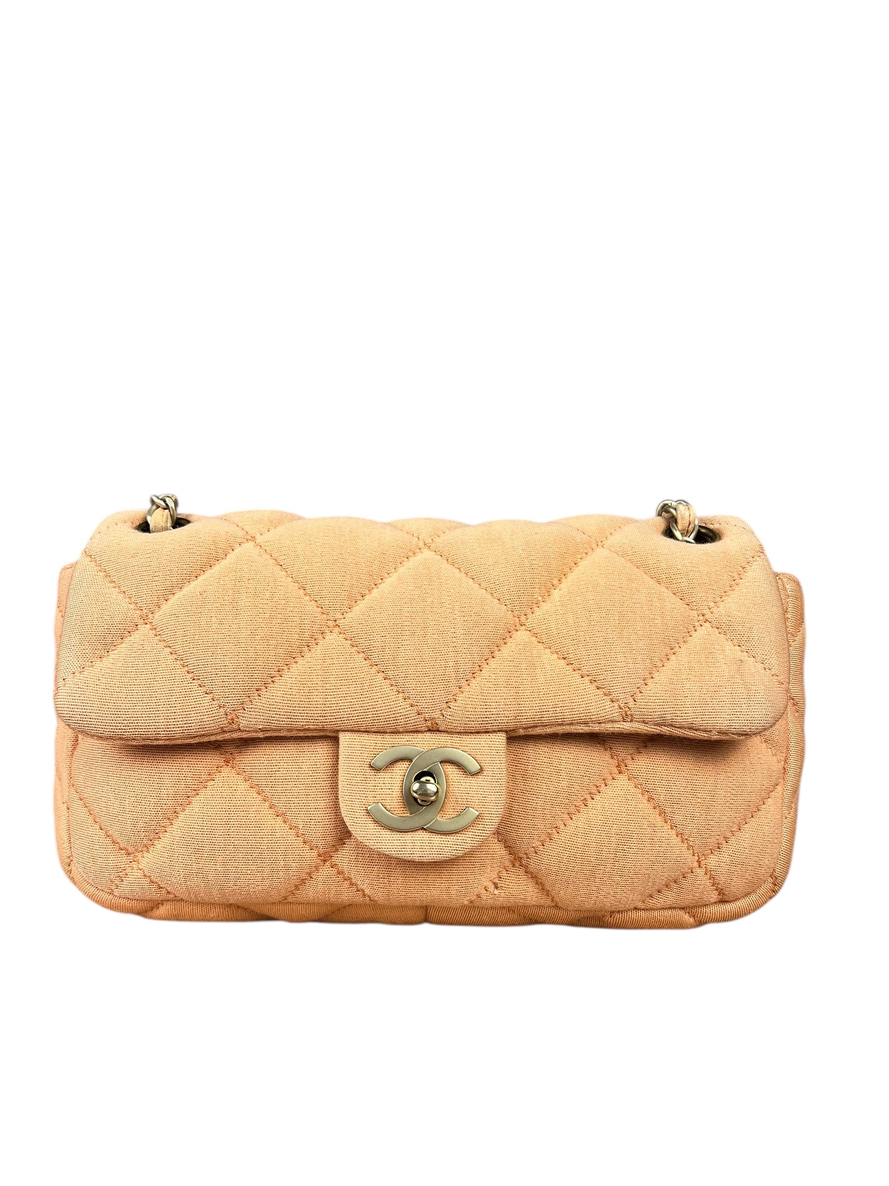 Chanel CC Flap Bag Peach Jersey Quilt