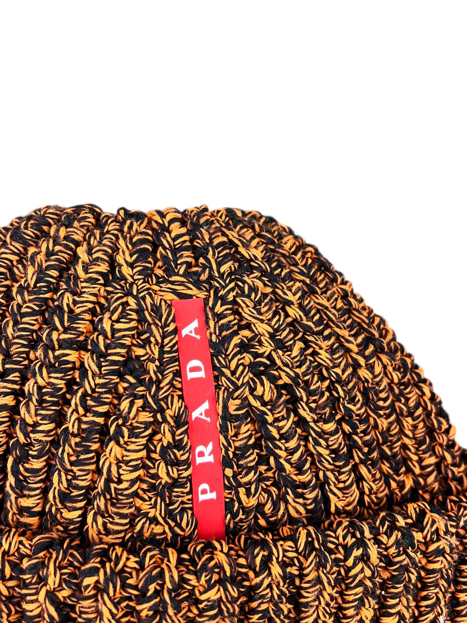 Prada Knit Polyester Black/Orange Beanie