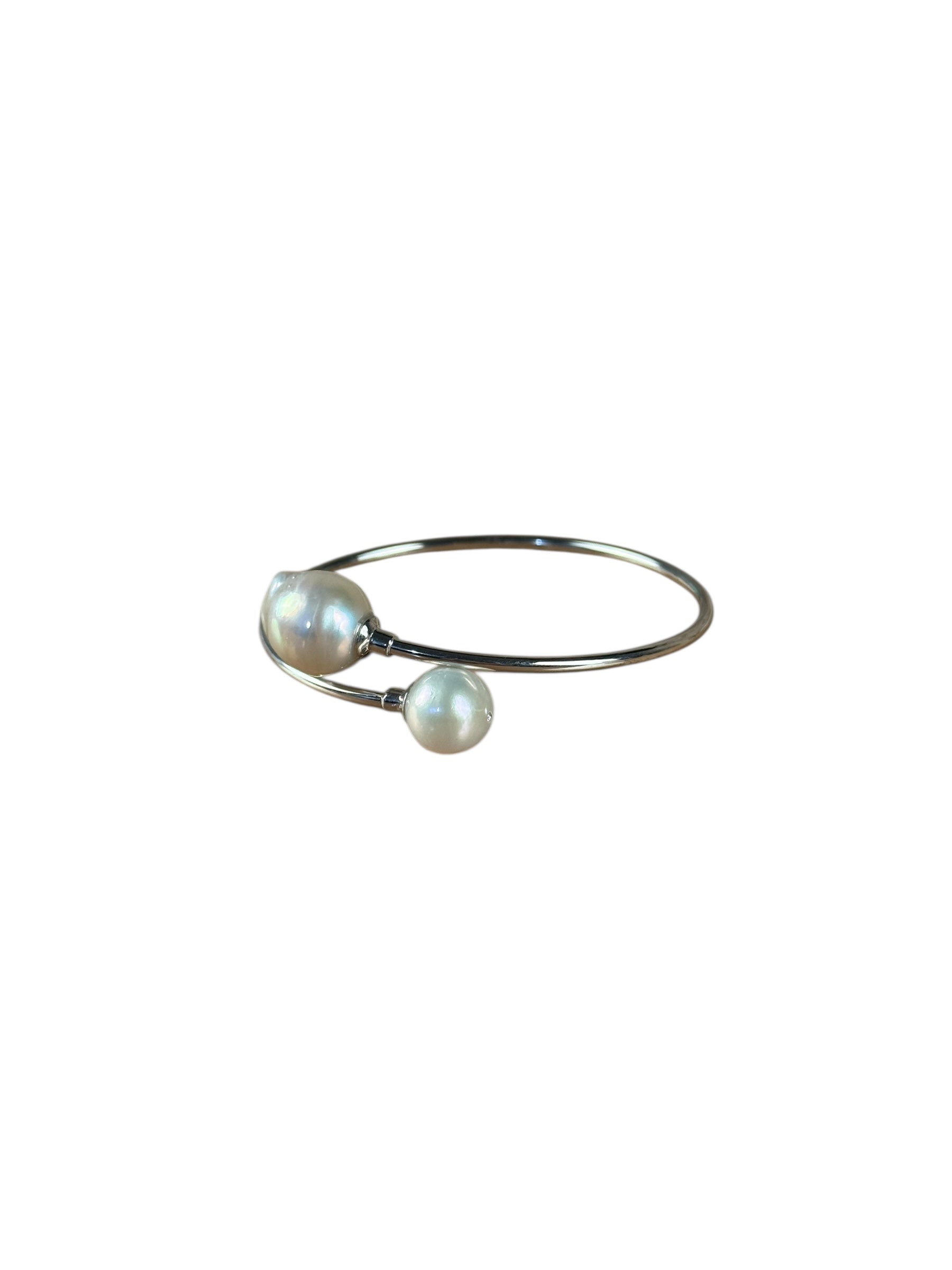 Silver-Toned Real Pearl Wrap Bangle Bracelet