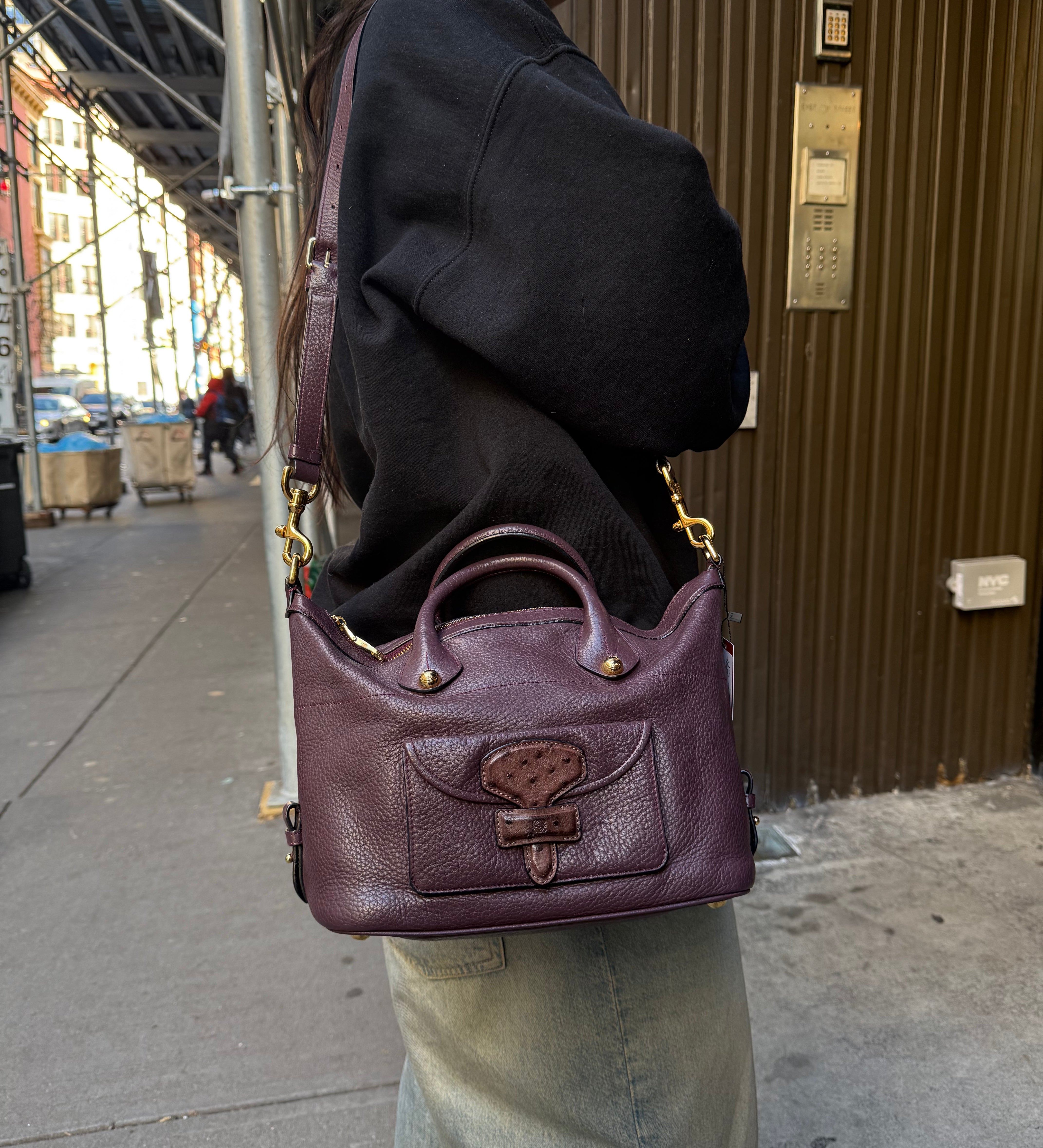 Loewe Purple Leather Ostrich Front 2Way Handbag