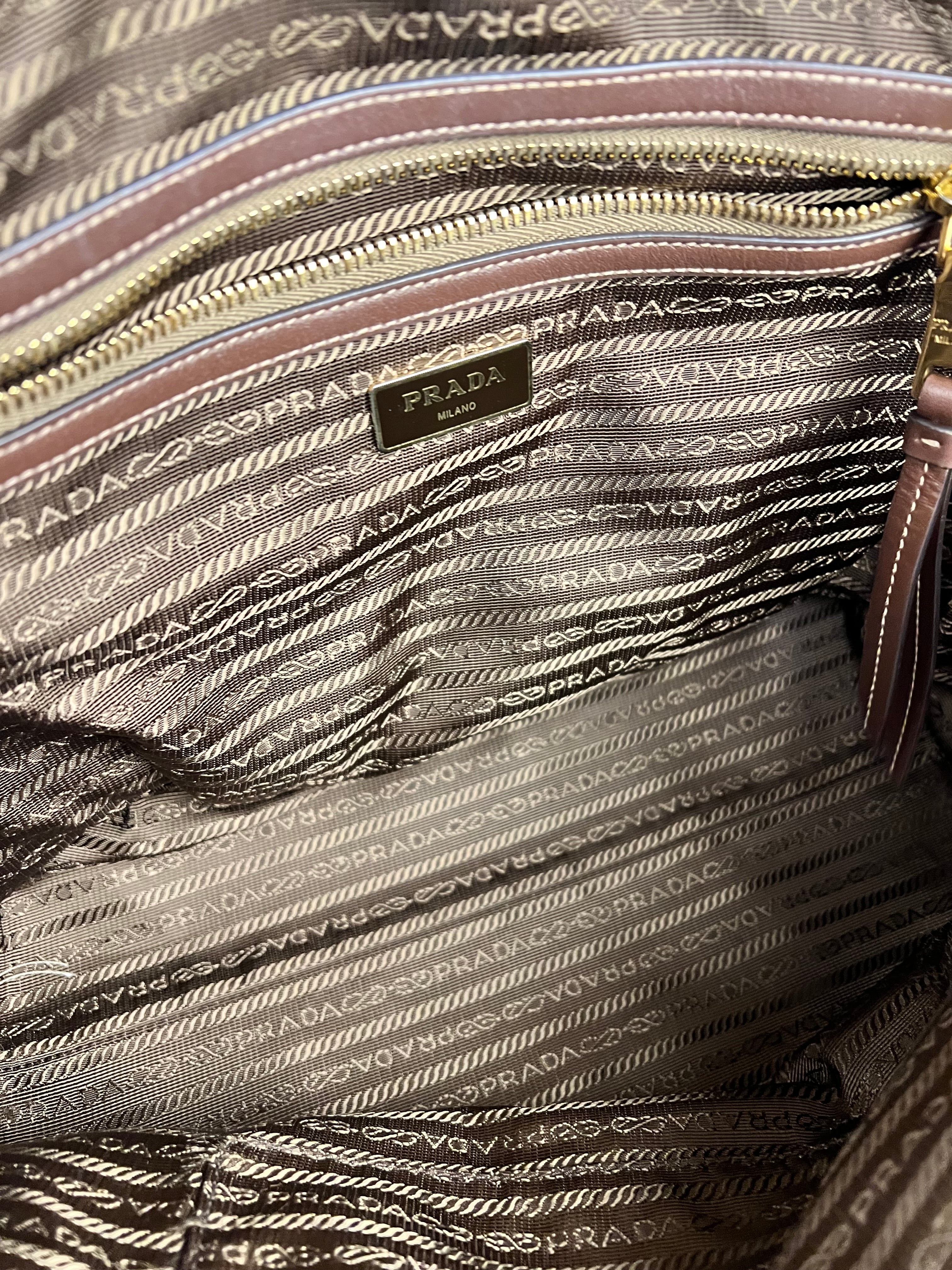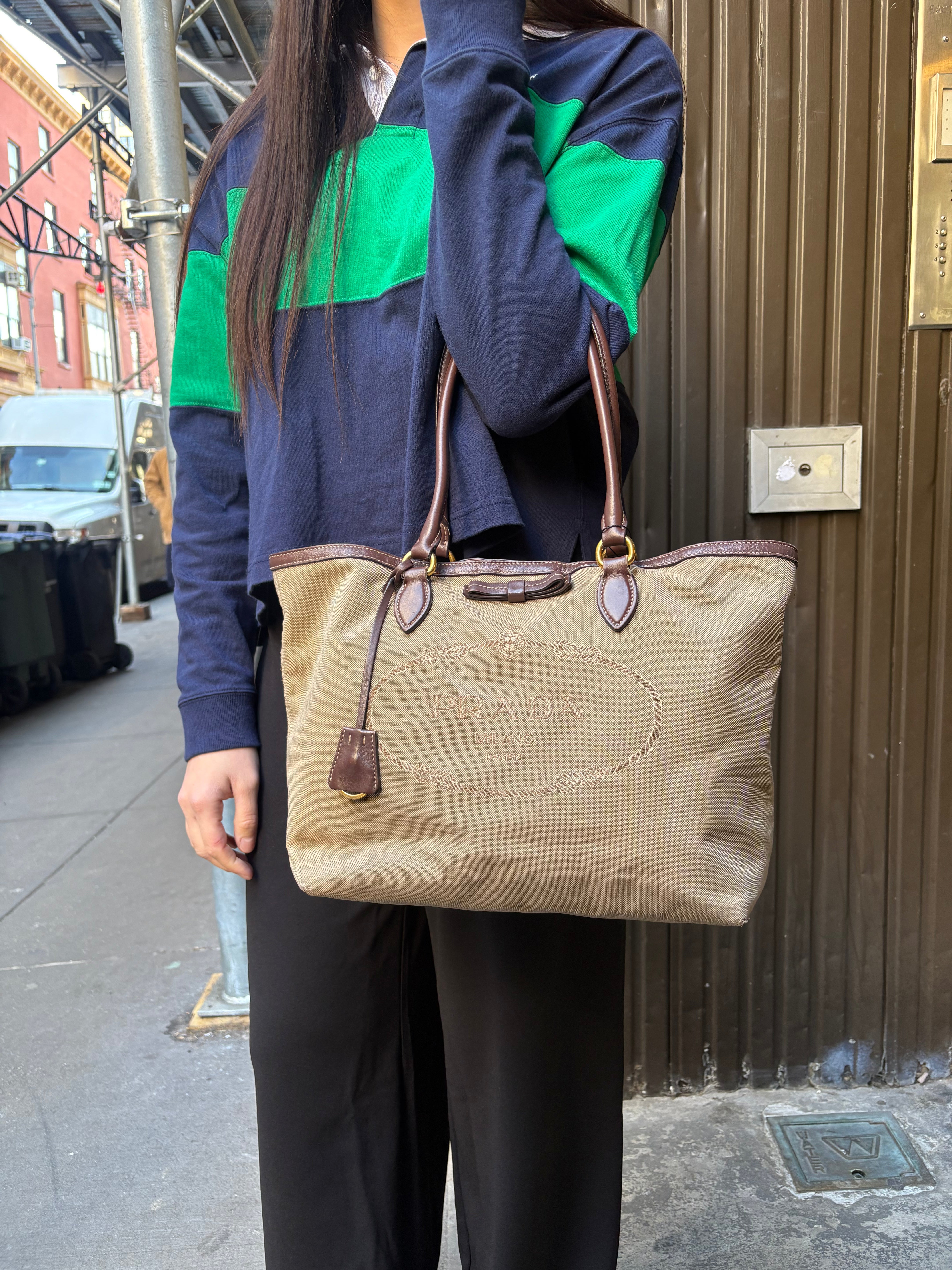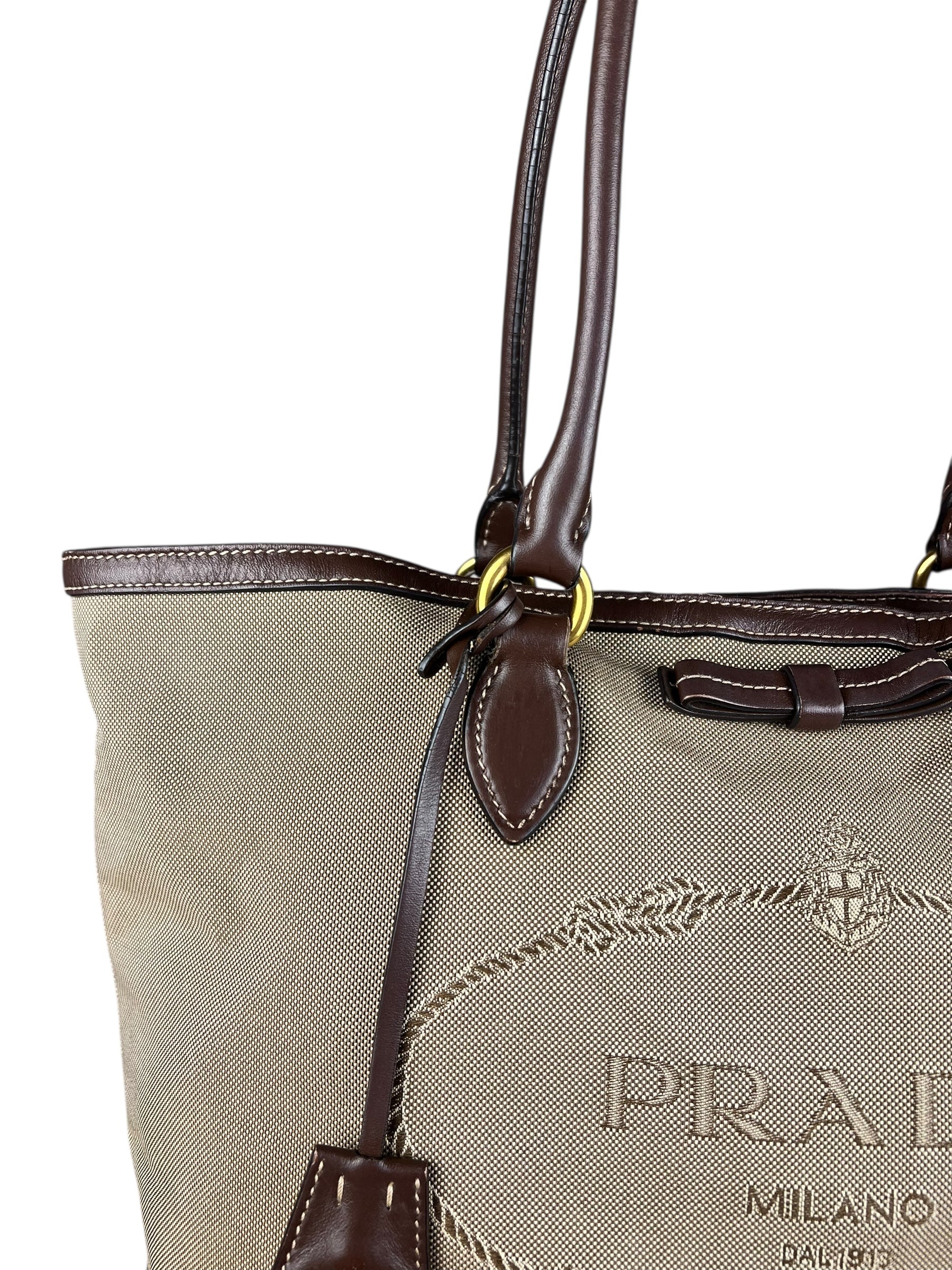Prada Vintage Jacquard Logo Tote Brown