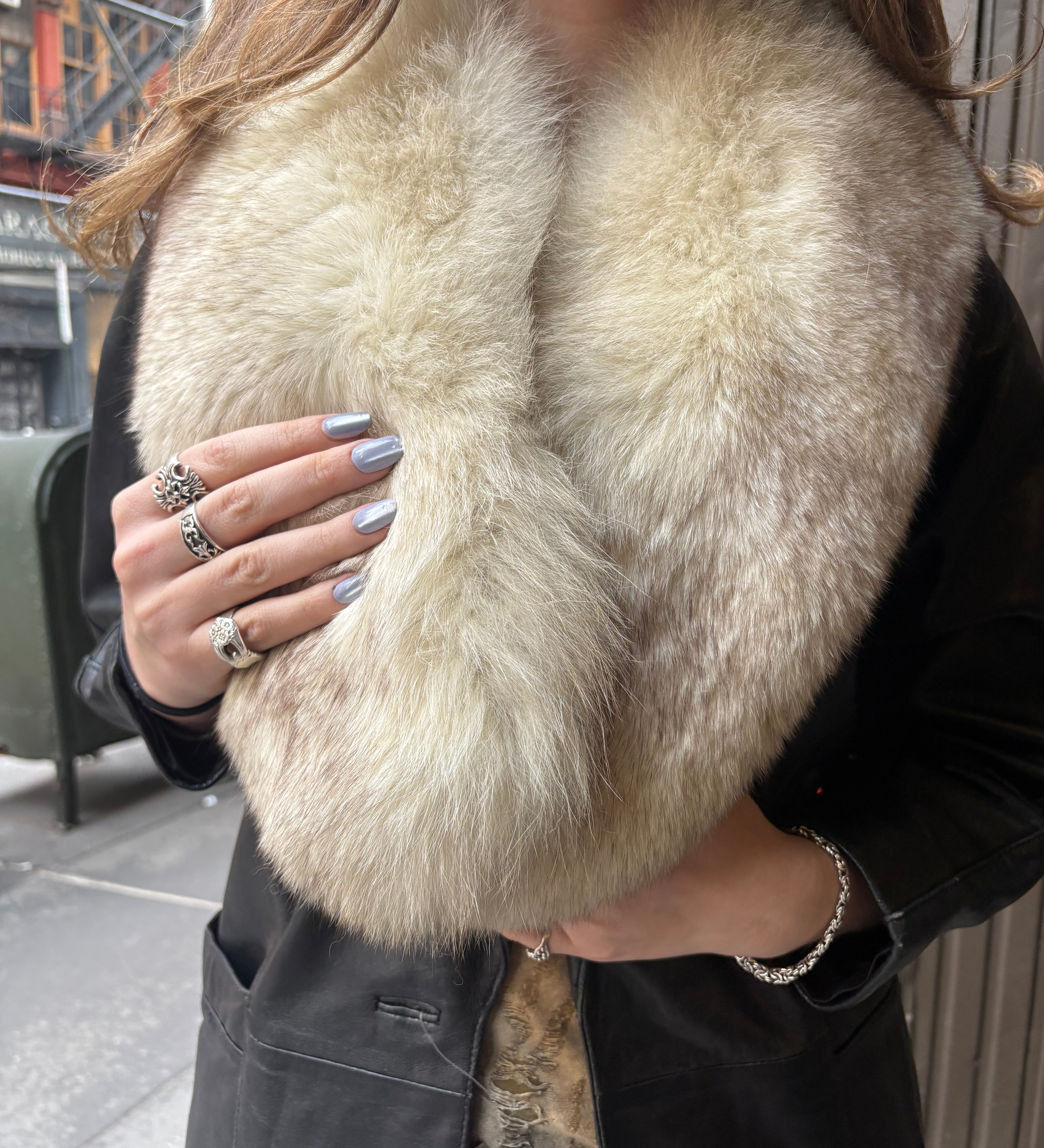 Saga Fox Vintage Ivory Light Brown Fur Shawl
