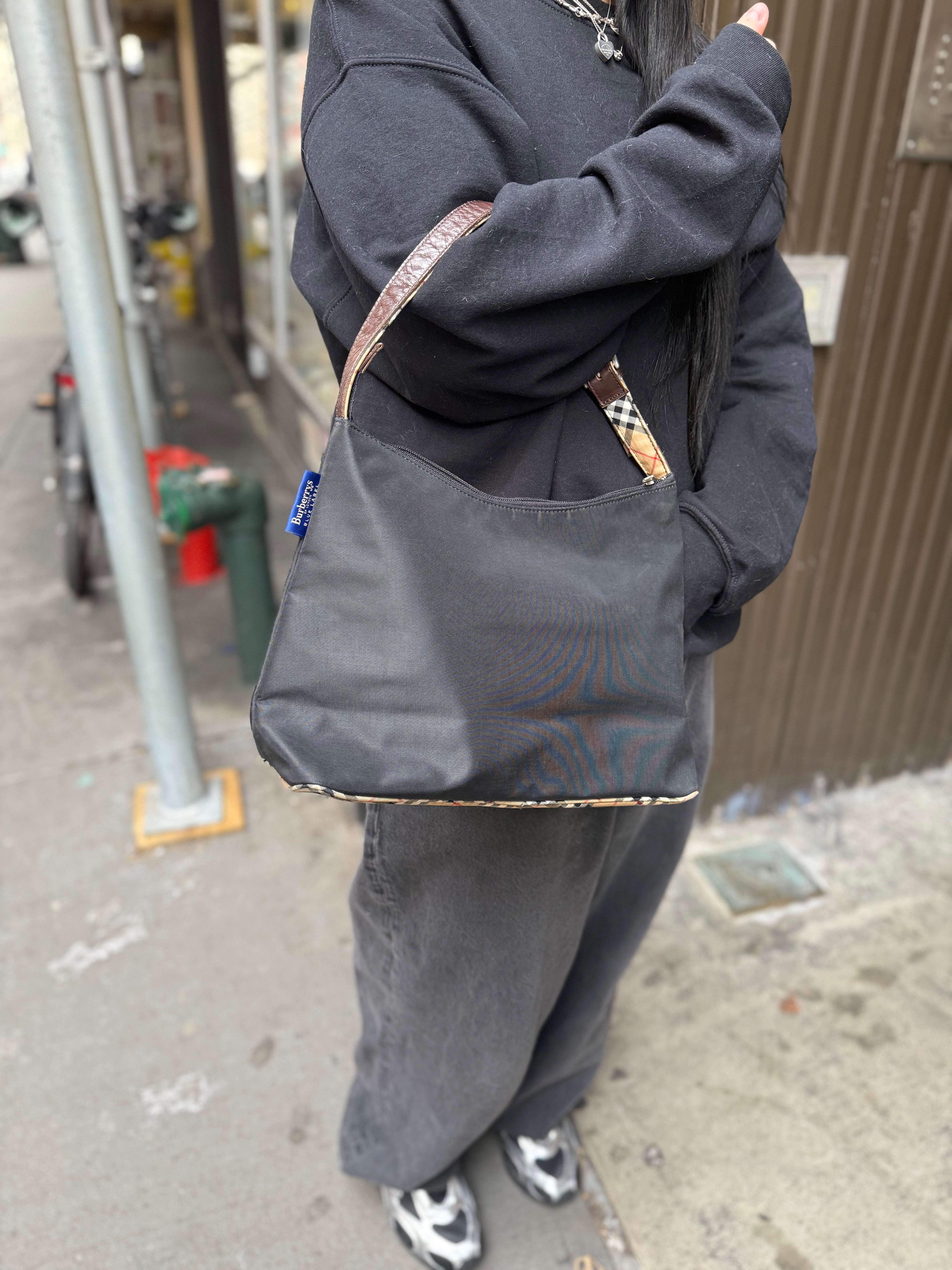 Burberry Nylon Check-Trimmed Shoulder Bag