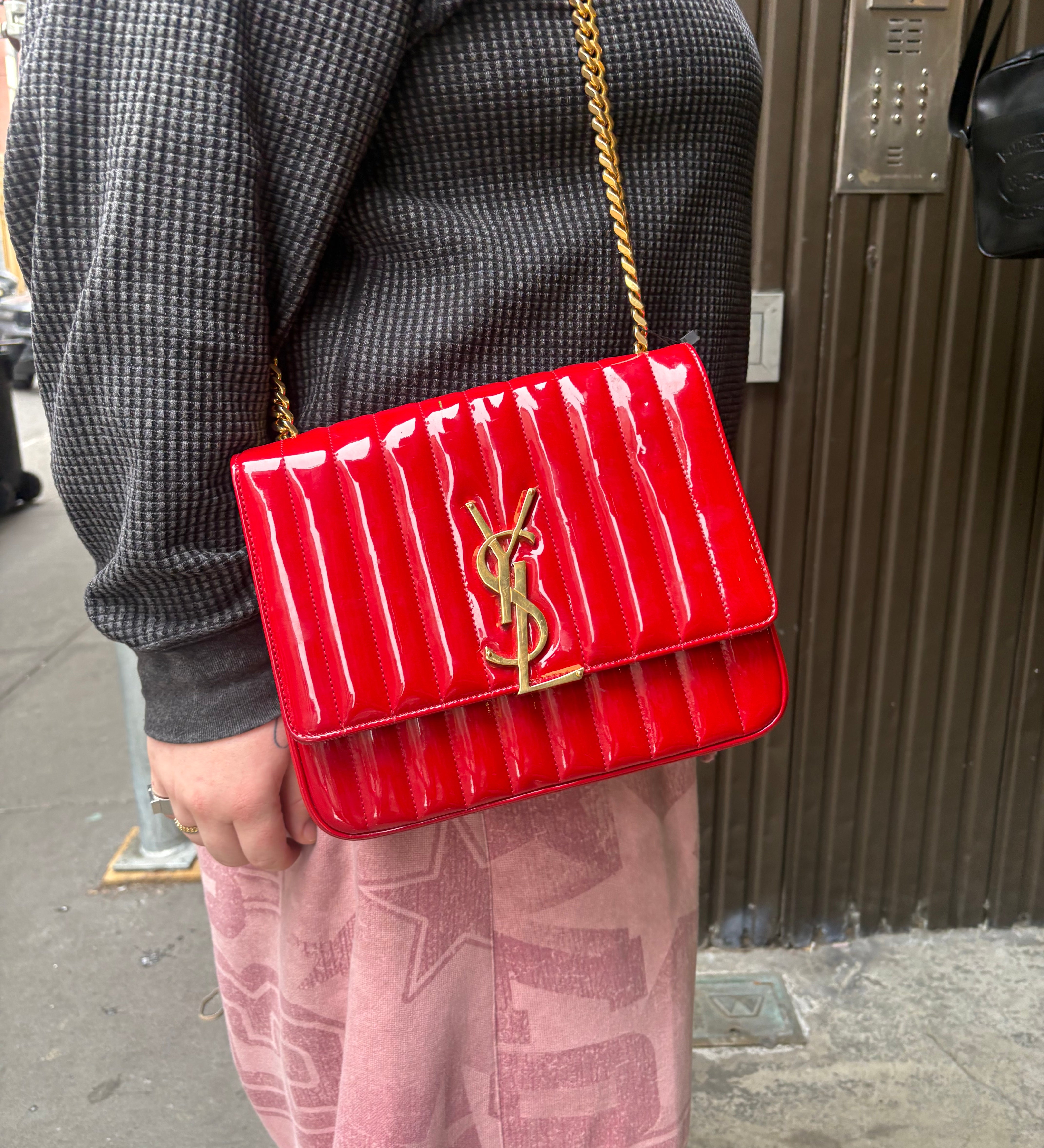Saint Laurent Red Patent Vicky Chain Flap Bag