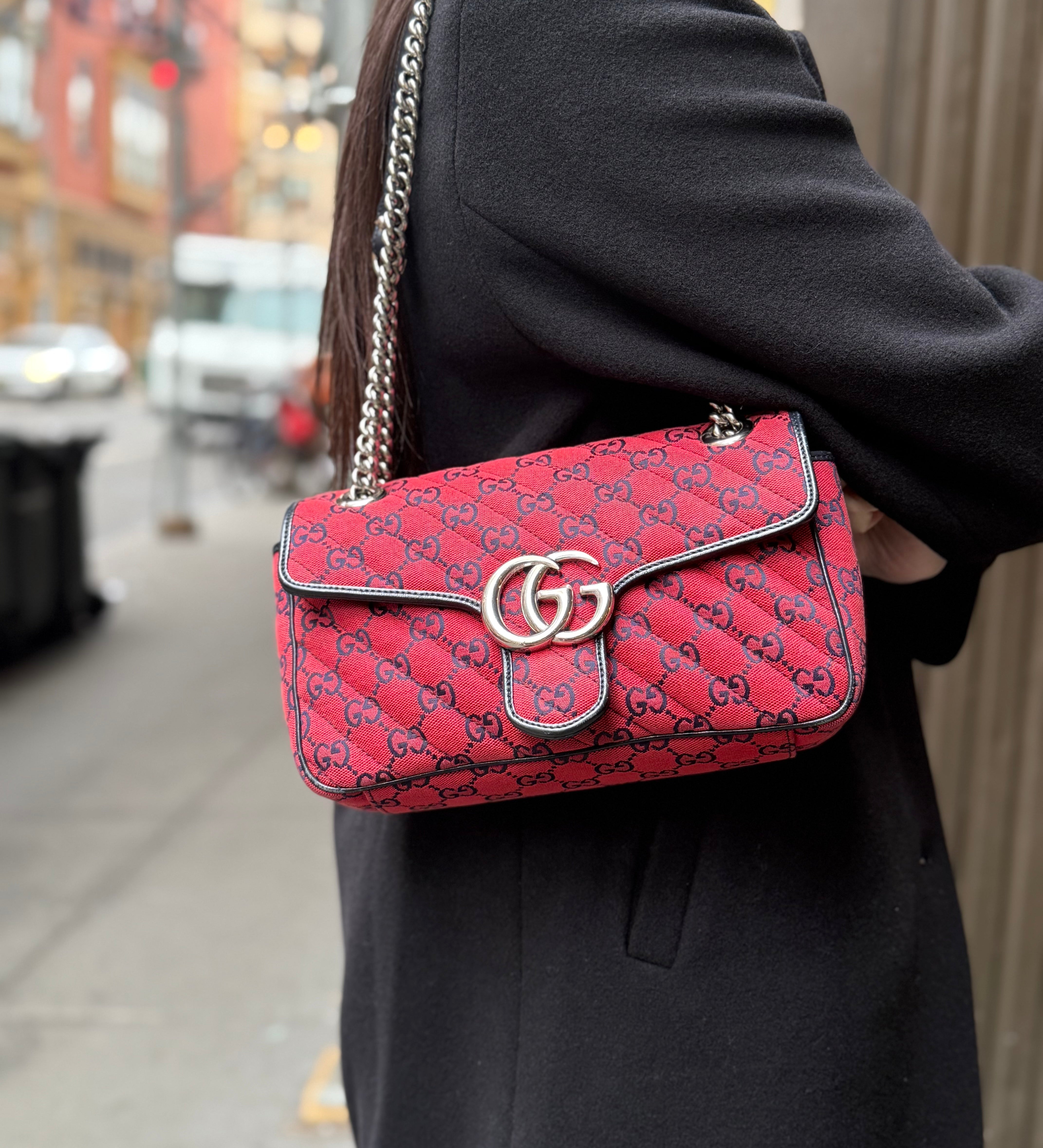 Gucci GG Red Marmont Flap Chain Shoulder Bag