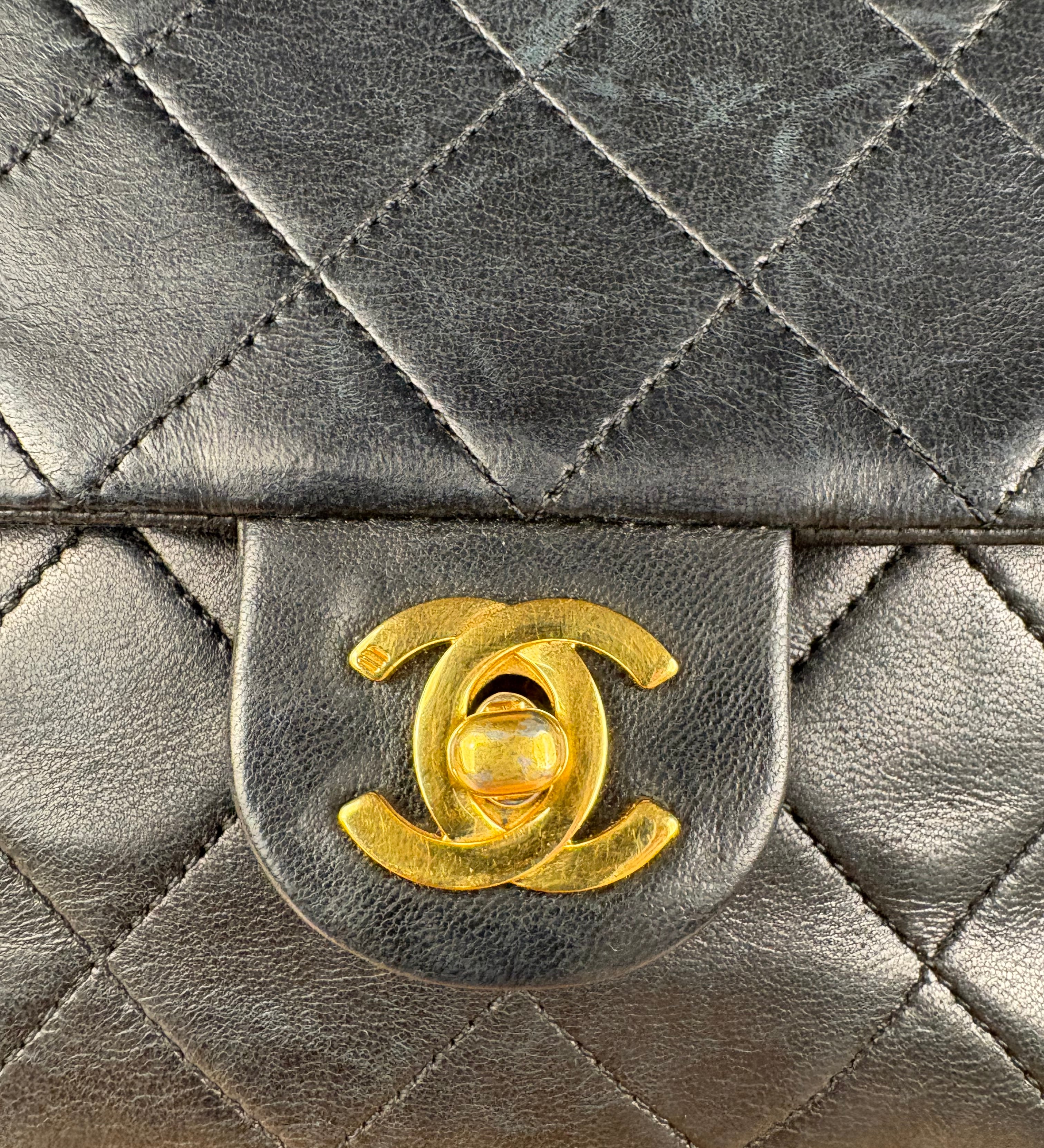 Chanel Black Diamond Stitch Flap CC Bag 1988