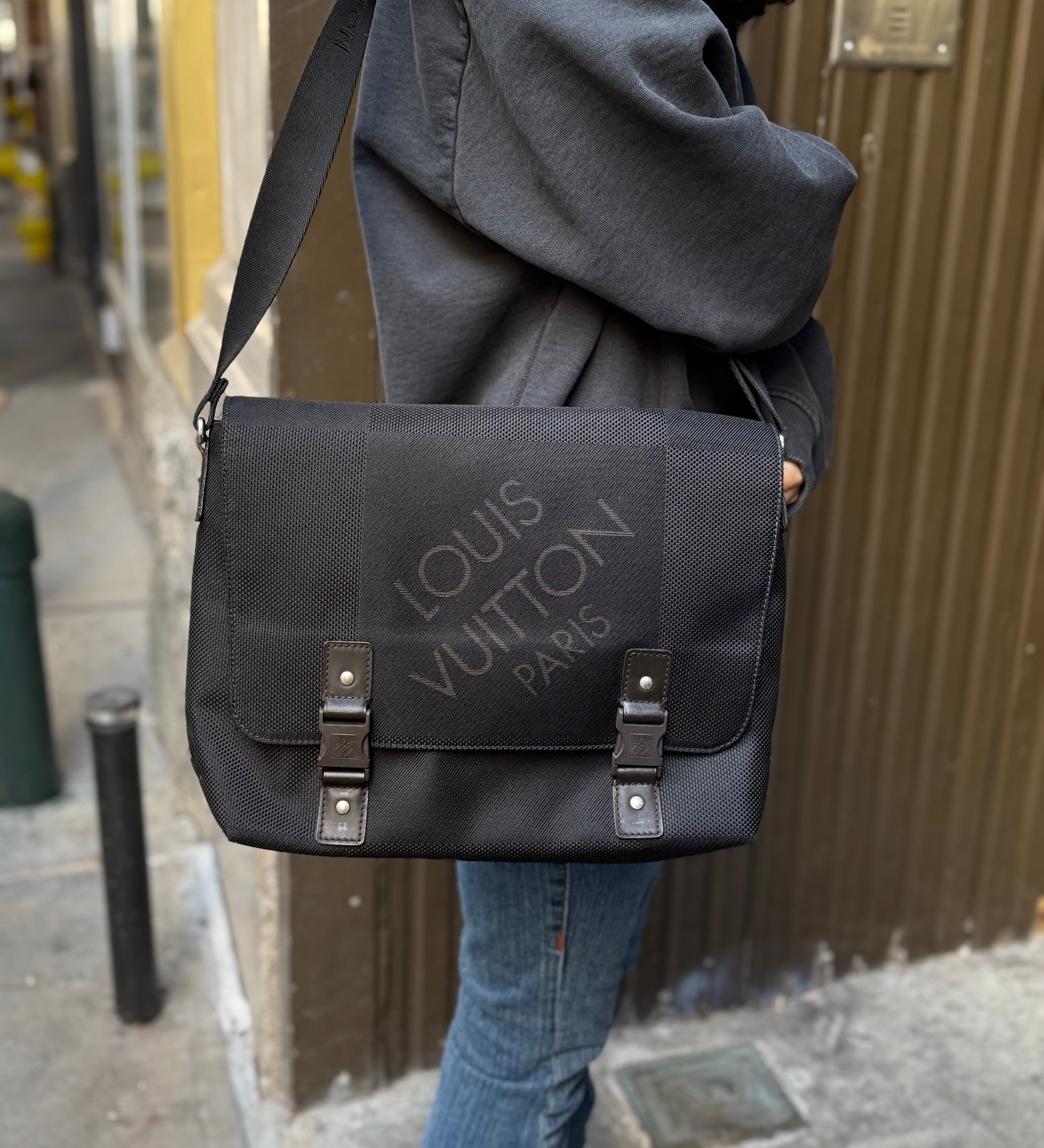Louis Vuitton Black Damier Geant Flap Messenger