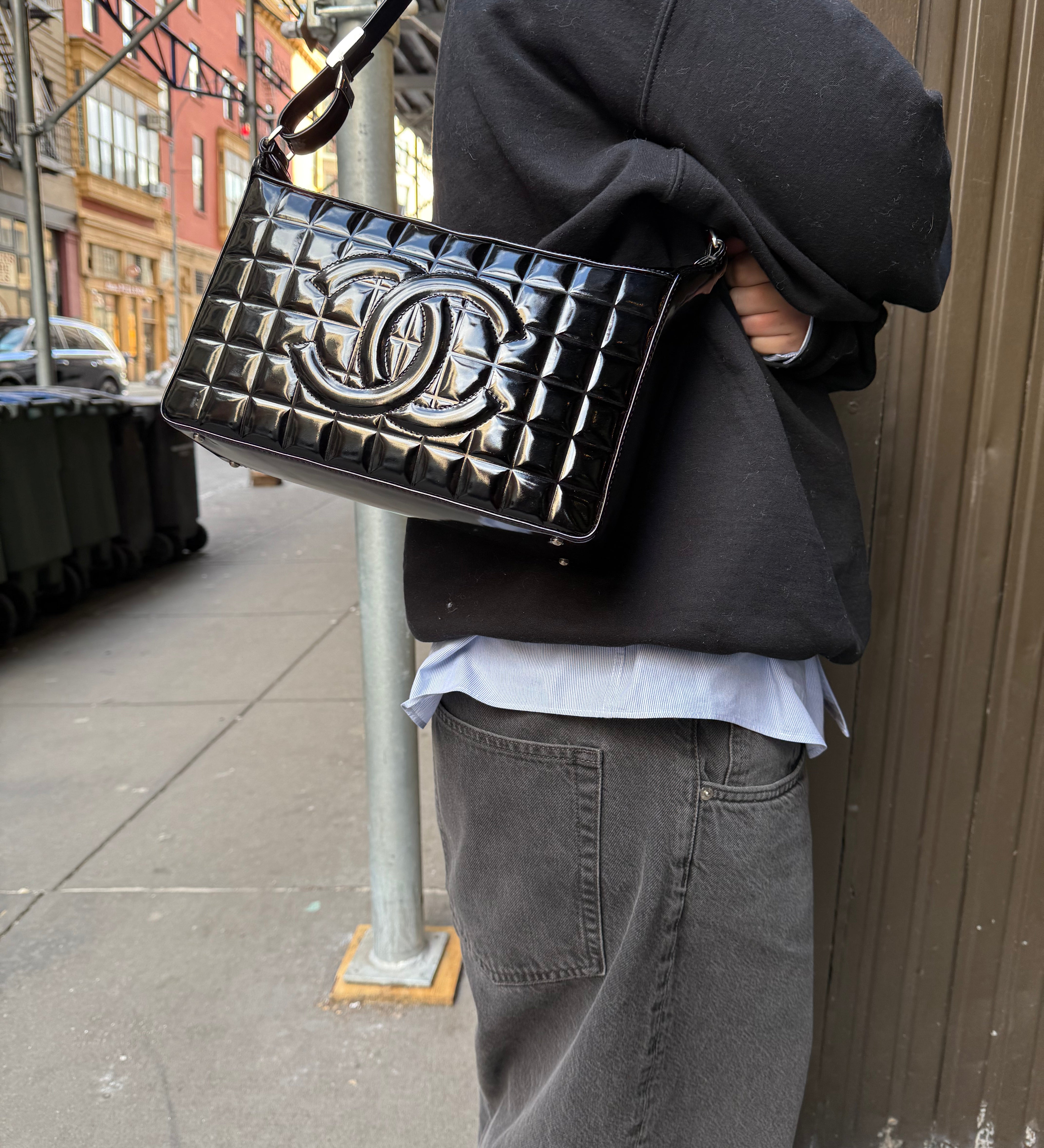 Chanel Black Patent Chocolate Bar Shoulder Bag '02
