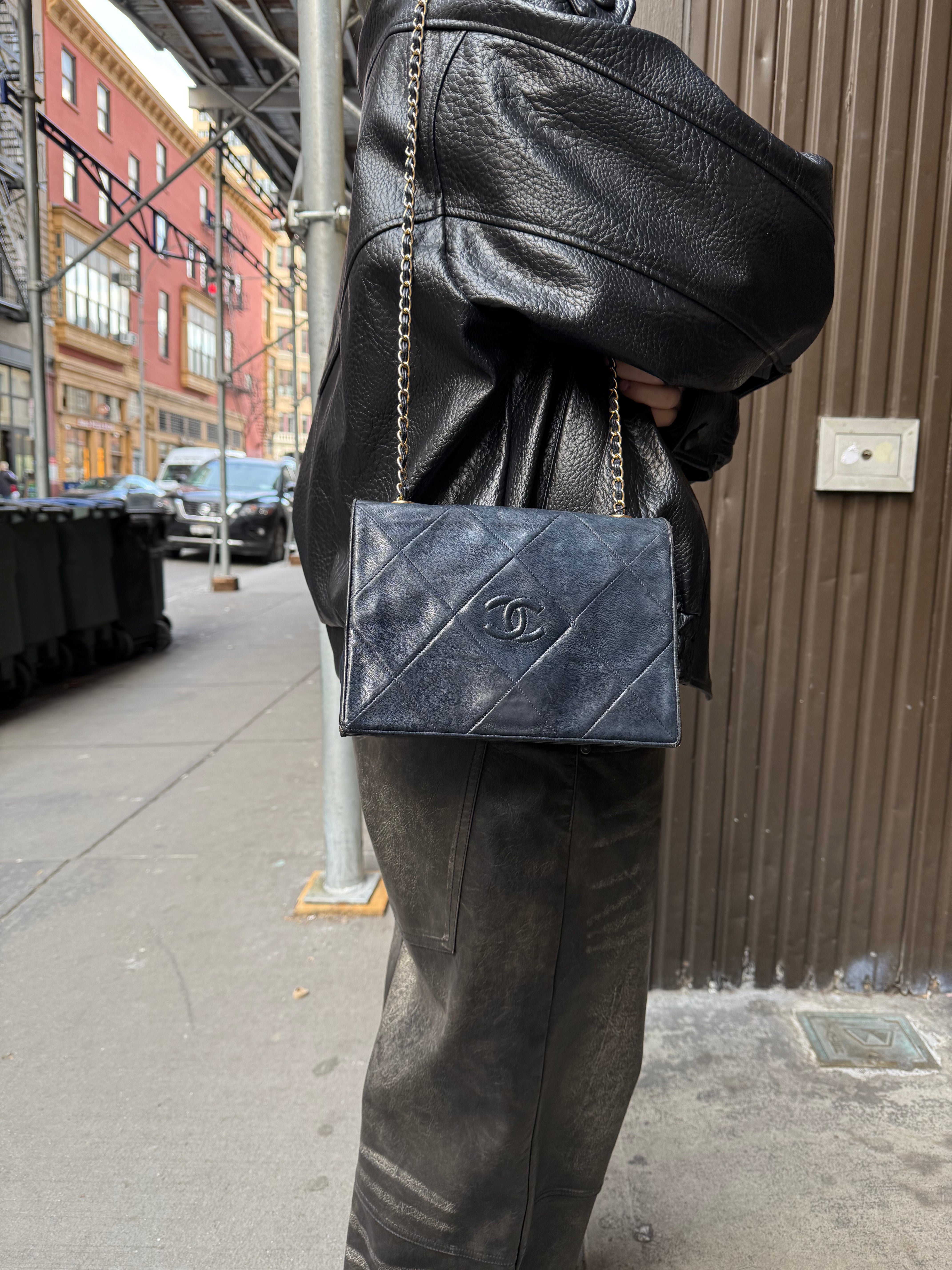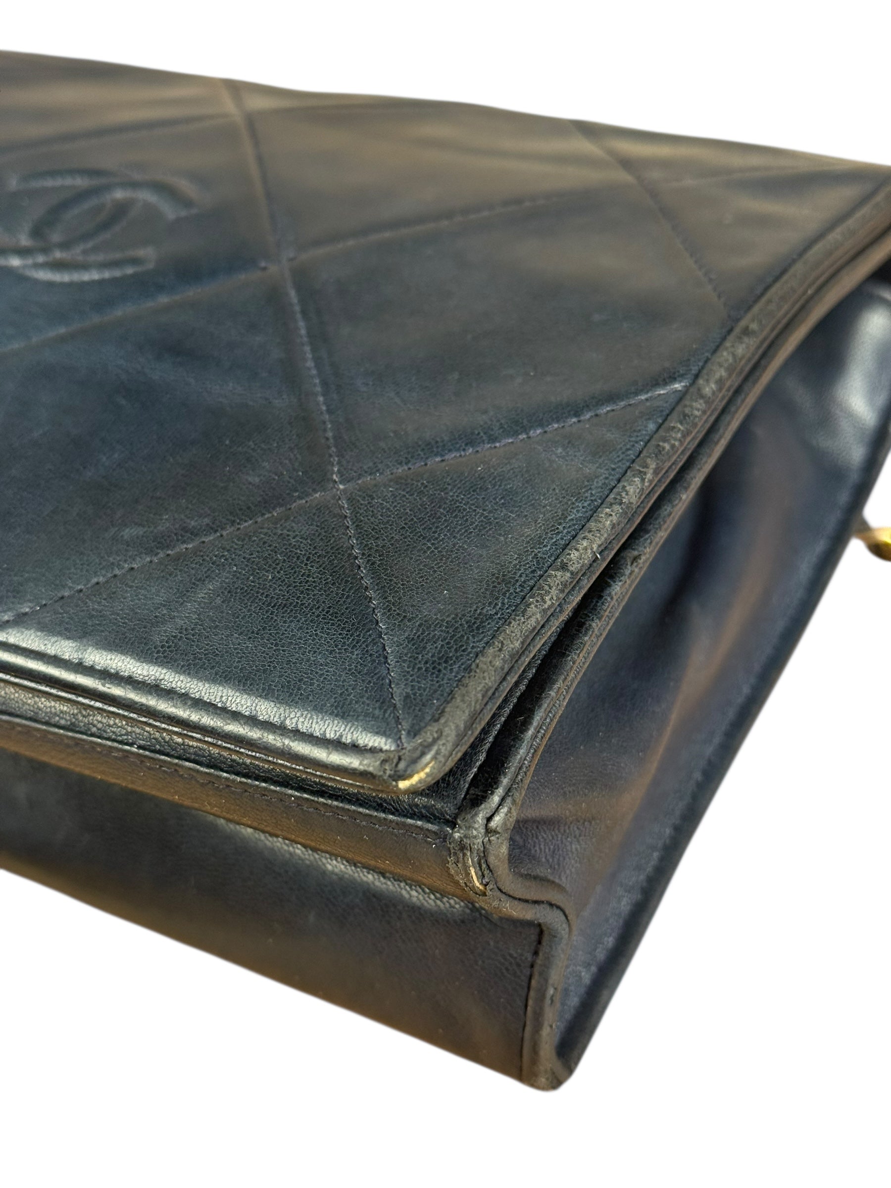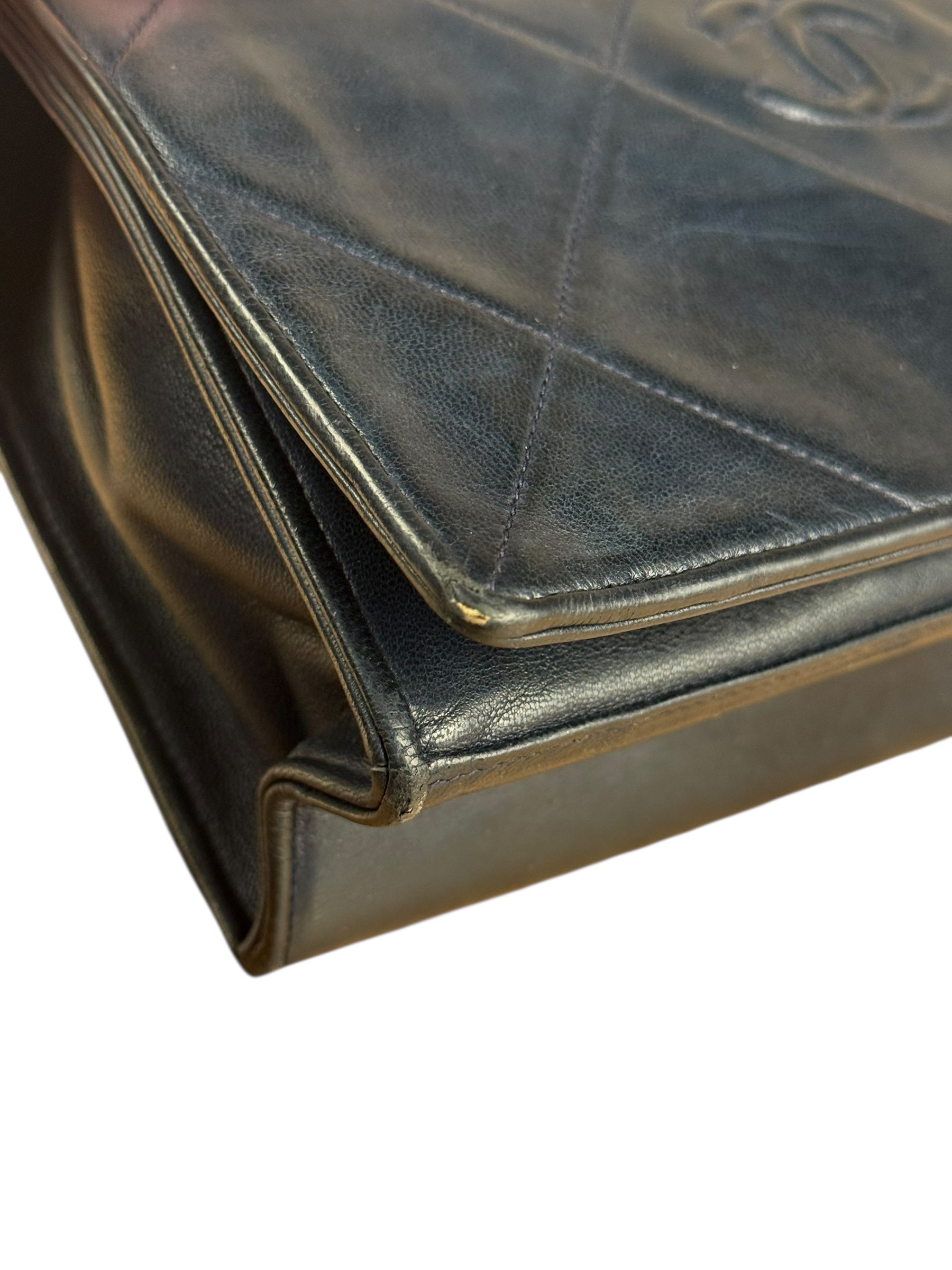 Chanel Black Diamond Stitch Flap CC Bag 1988