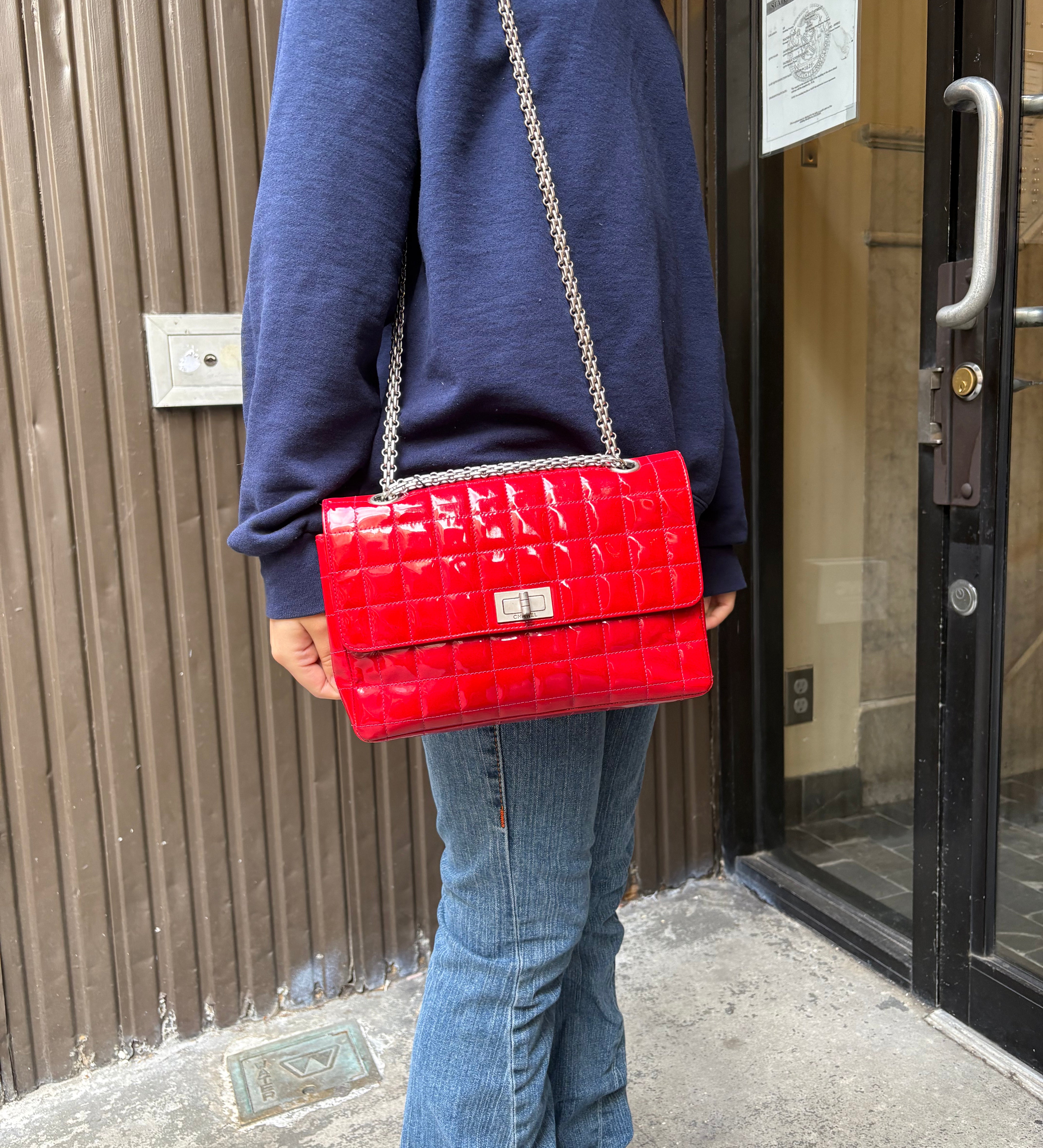 Chanel Red Patent Chocolate Bar Chain Flap Bag 2000
