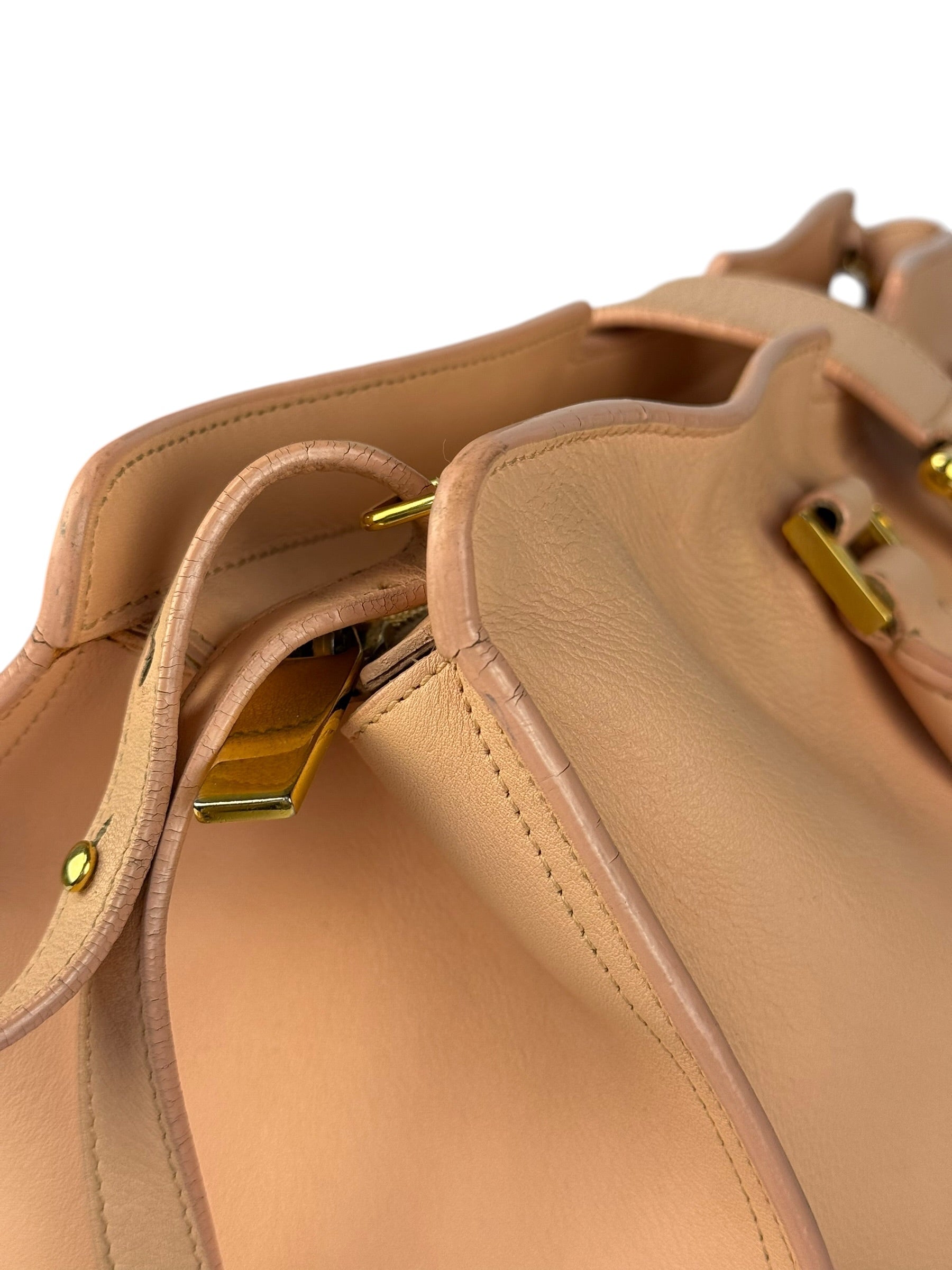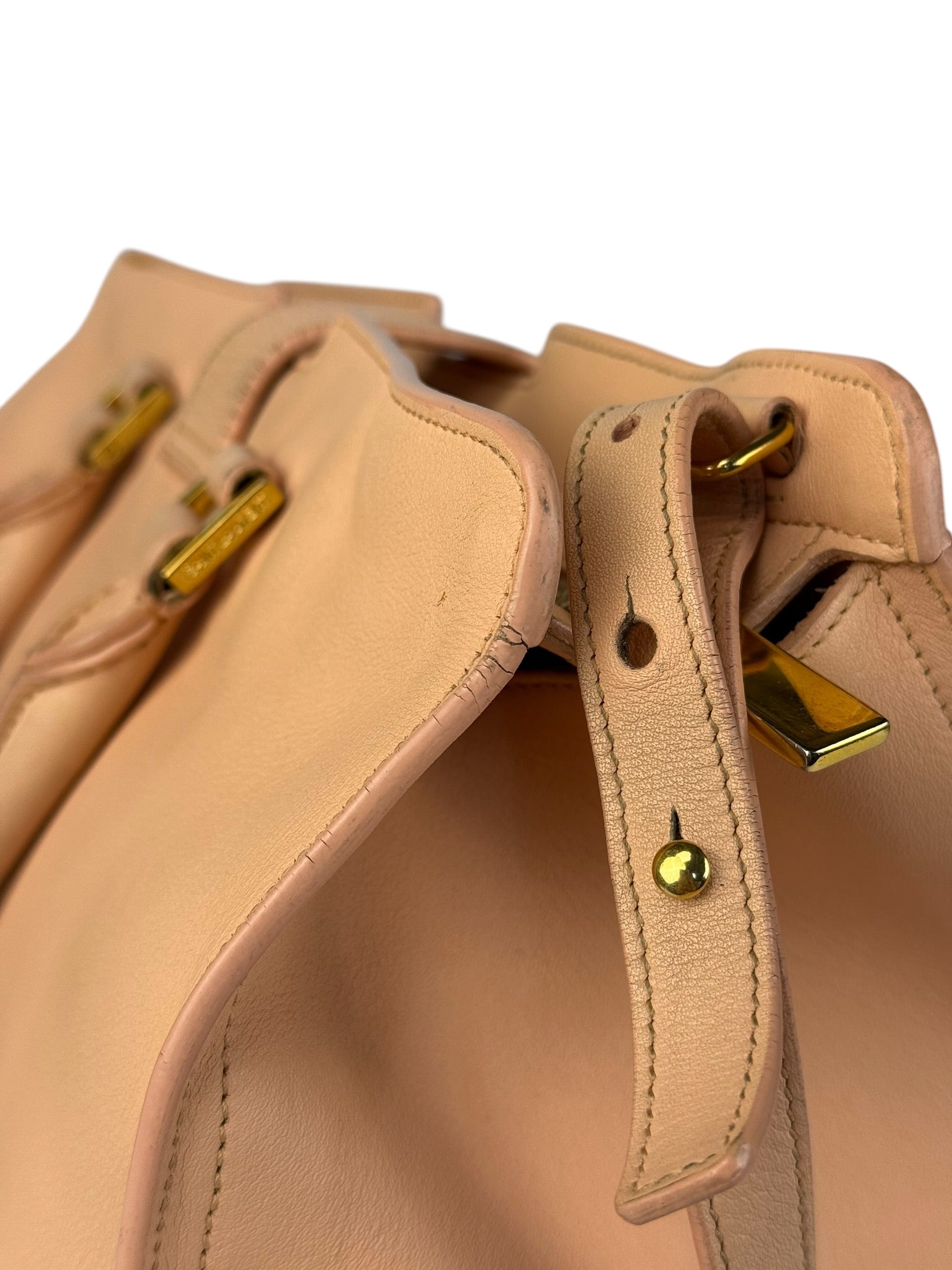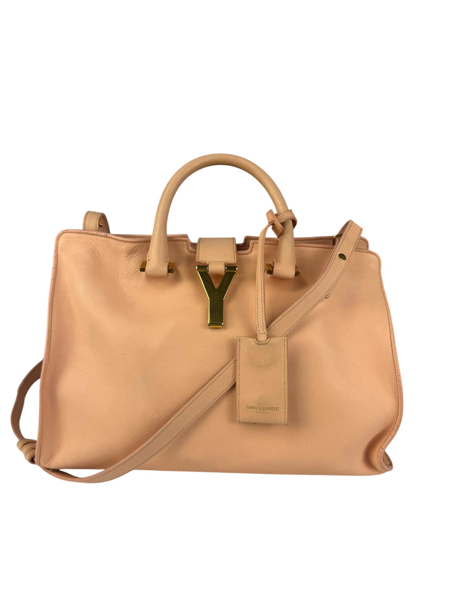 YSL Vintage Classic Y Cabas Peach Leather 2Way Handbag