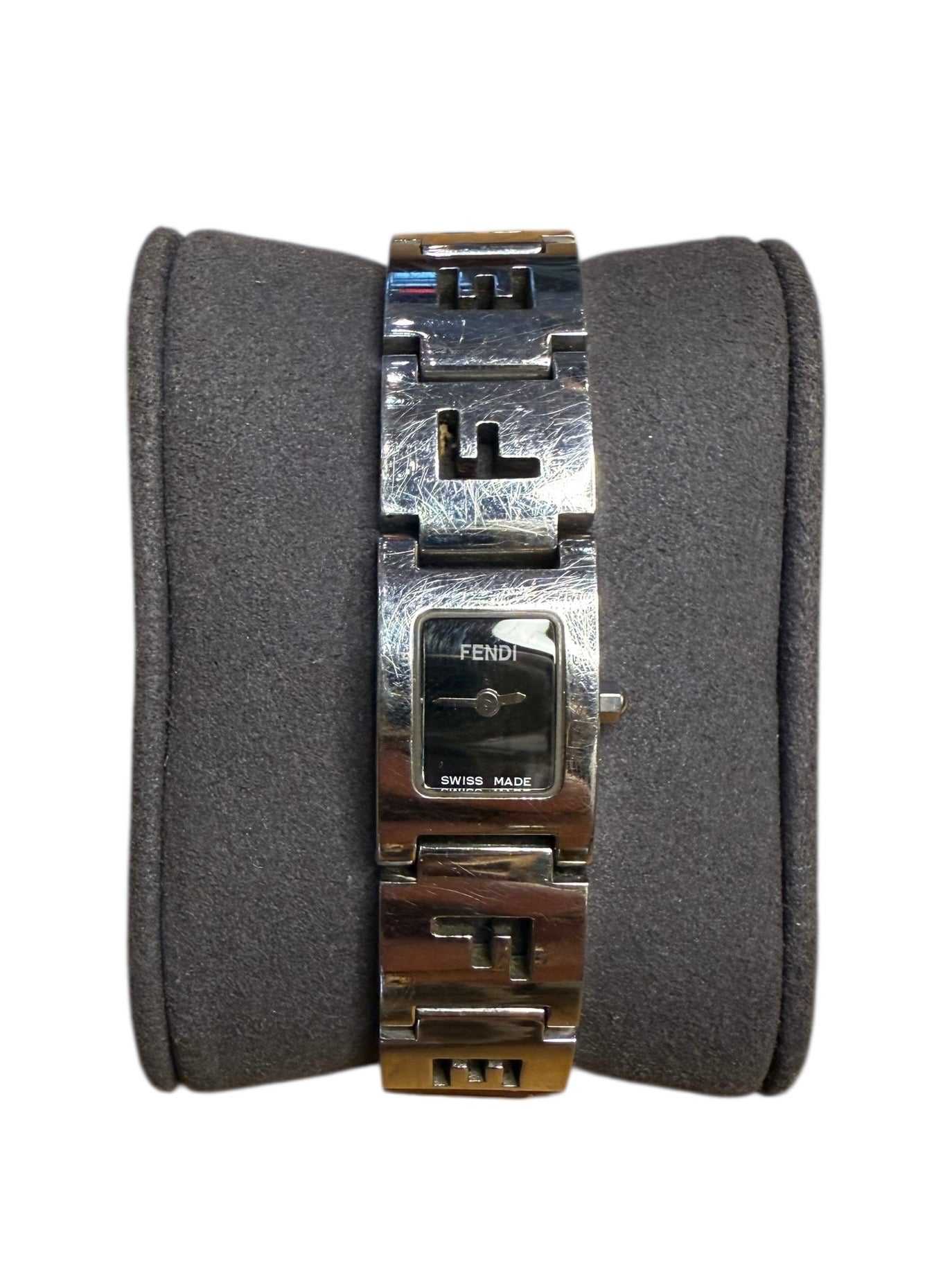 Fendi Black Dial Tank Stainless Letter Links